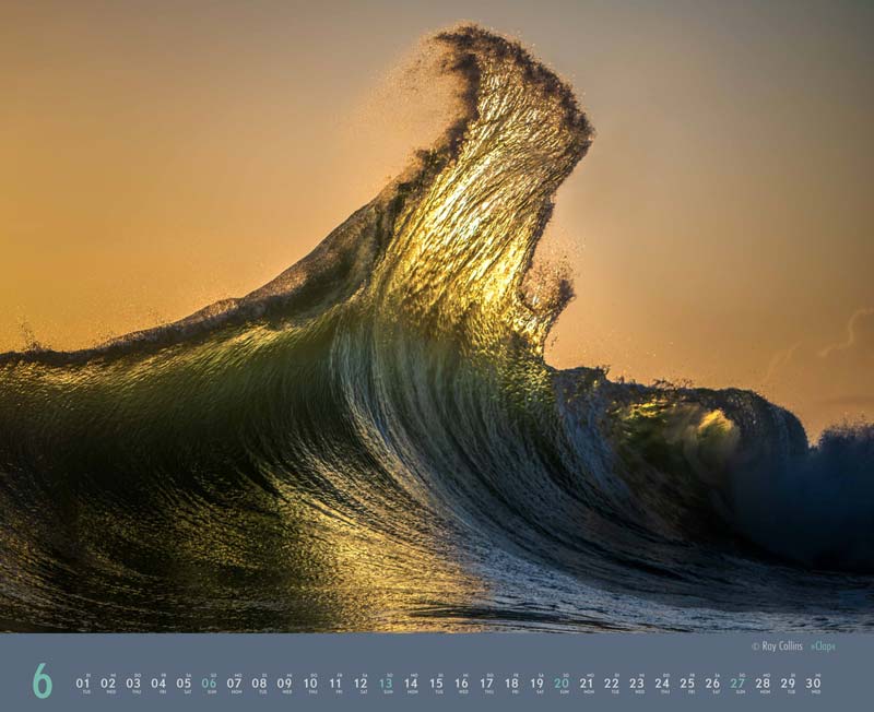Gigantic ocean waves and light combine to create great art in the paintings of Australian Ray Collins. Water is his element. This is how he repeatedly creates spectacular photos, for which the passionate surfer and photo artist has received numerous awards. Some photos give the impression of mountain massifs rising out of the ocean, while others look like a fluid painting. The play of countless shades of blue, turquoise, green and even yellow and pink – in color harmony with the sky – is also perfectly captured. The enthusiasm for the Artist of the Ocean’s once again breathtaking series of images brought bronze for “Waves” at the end of the jury day.